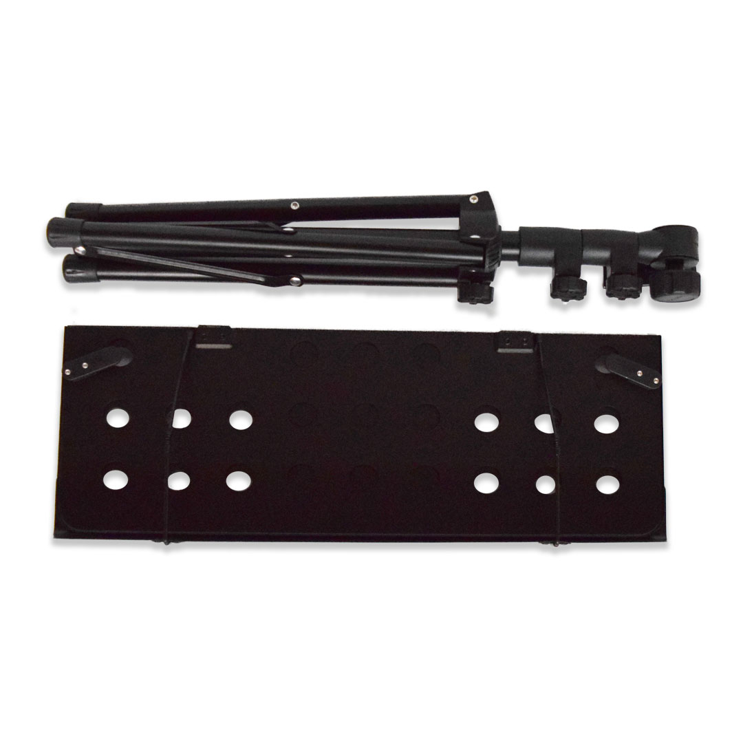 Ofrece una excelente estabilidad, con una placa metálica perforada que reduce el peso sin comprometer su resistencia. Gracias a su estructura fija de altura media y bandeja amplia, es una opción perfecta para quienes necesitan un atril sólido, práctico y de fácil traslado dentro de un mismo espacio.