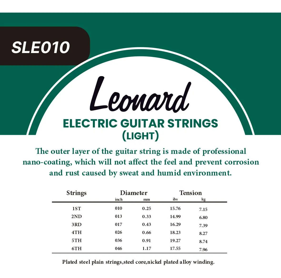 Encordado Leonard Sle010 De Guitarra Electrica El encordado Leonard SLE010 es la elección perfecta para los guitarristas eléctricos que buscan calidad y rendimiento. Con una cantidad de 6 cuerdas, este modelo está diseñado específicamente para guitarras eléctricas, garantizando un sonido vibrante y potente. La marca Leonard es reconocida por su compromiso con la excelencia, ofreciendo productos que cumplen con las expectativas de los músicos más exigentes.
